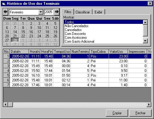 Histórico de uso dos terminais